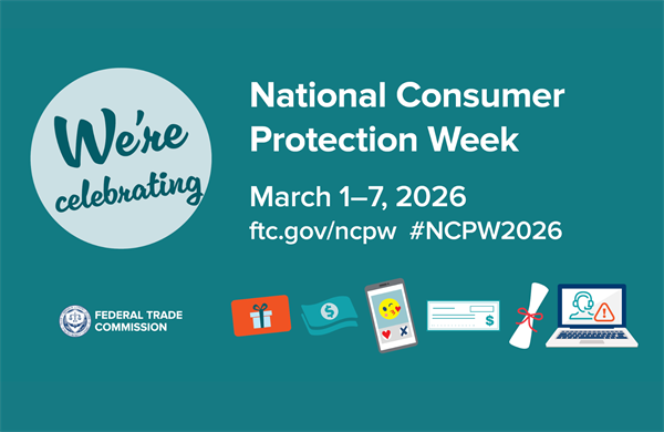 March 1 - 7 is National Consumer Protection Week, a nationwide initiative focused on fraud awareness and prevention sponsored by the Federal Trade Commission. 2026 is the 28th year of the FTC joining with partner organizations to amplify the importance of consumer protection.