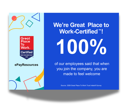 News ePayResources is a Great Place to Work! 4/1/2026 We are proud to be certified! Read more Tags: culture, Great Place to Work