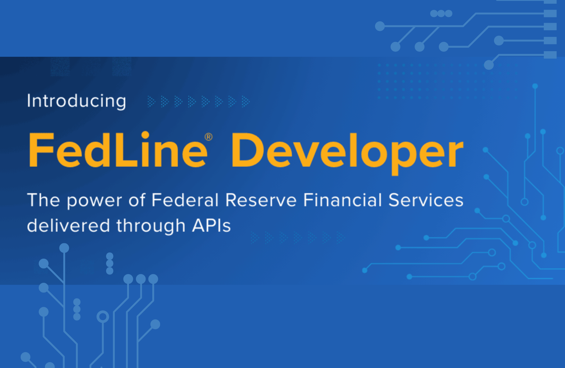 Federal Reserve Financial Services (FRFS) has announced the availability of Application Programming Interfaces (APIs) via the FedLine Developer site in response to valuable customer and industry feedback. By providing access to payments and account information, as well as streamlined data integration with financial institution customer platforms, APIs can enable your organization to stay in step with technology advancements to optimize internal processes, as well as create new products and revenue streams.